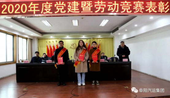 副总经理胡卫国宣读获奖单位名单。临泉机动车驾驶员培训有限公司、界首分公司、临泉分公司、阜阳旅游客运有限公司、阜南分公司、利辛分公司、物流中心、太和分公司荣获劳动竞赛先进单位;第十六汽车队党总支、阜阳中心站党支部、亨运物业公司党支部、物流中心党总支、快客分公司党支部、阜阳东站党支部、临泉驾培公司党支部、界首分公司党总支荣获先进党组织;阜阳中心站工会、第十六分公司工会、界首分公司工会、物流中心工会、亳州客运总站工会、临泉分公司工会、涡阳分公司工会荣获先进工会;阜阳中心站、阜阳东站、亨运物业公司荣获创建第六届全国文明城市先进集体。