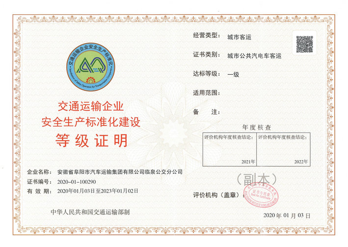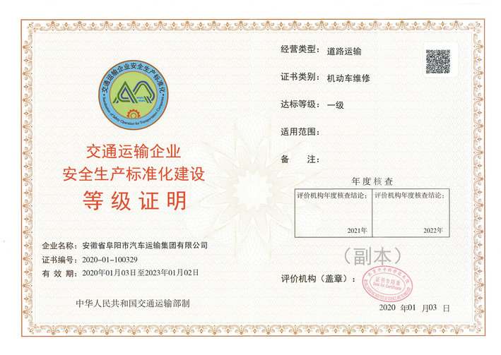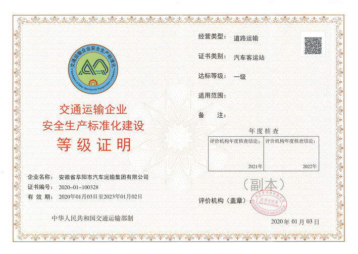 为了严格落实企业安全生产主体责任,切实推动企业安全生产工作规范管理,确保生产事故持续下降,3044永利集团按照《交通运输部关于印发〈交通运输企业安全生产标准化建设评价管理办法〉的通知》(交安监发﹝2016﹞133号)文件要求,切实推进安全生产标准化达标工作,并于2020年1月通过了安全标准化四个类别的一级达标评审。