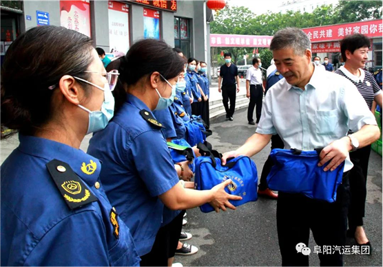当下正值盛夏时节,集团公司广大职工努力克服高温天气和新冠疫情的双重考验,立足岗位实际,做好本职工作,确保高温天气下生产经营工作安全有序开展。在阜阳中心站,李祥亮亲切与尚丙启董事长及一线职工交谈,询问高温天气下集团公司采取的防暑降温措施,对广大职工坚守工作一线表示感谢,并送上绿豆、绿茶、矿泉水、毛巾等防暑物质,把清凉送到车站一线,把关怀送到职工心坎。李祥亮还嘱托大家要做好疫情防控,坚持安全生产,切实保障人民群众生命安全和自身健康。