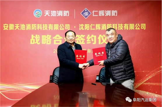 为加快推进水系灭火剂市场应用,做大做强环保消防产业, 12月26日下午,集团安徽天池消防科技有限公司和沈阳仁辉消防科技有限公司共同举行签约仪式。集团安徽天池消防科技将借助沈阳仁辉消防科技水系灭火剂产品,广泛开展水基灭火器灌装生产、销售等业务。