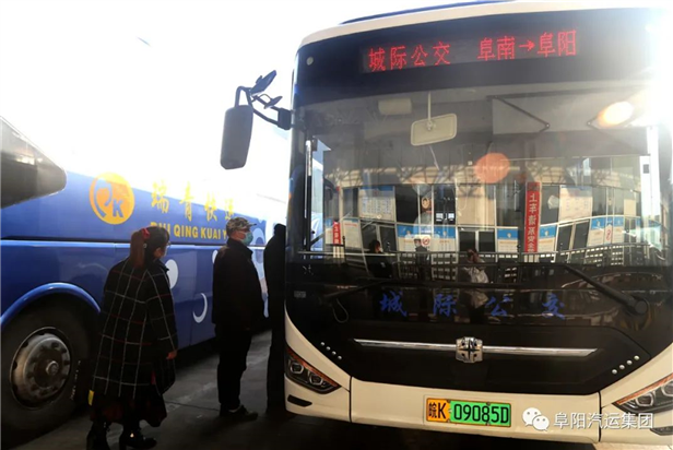 图为阜阳至阜南城际公交班车即将发车。 张洁 摄