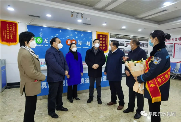 为充分发挥先进典型作用,弘扬榜样精神,在全社会营造学习先进、宣传先进、关爱先进的浓厚氛围,1月13日上午,阜阳市委副书记、政法委书记李军在市妇联主席郭琳、市直工委书记李涛、市交通运输局局长周拥军、集团公司董事长尙丙启等的陪同下,来到3044永利集团阜阳长途汽车中心站走访慰问奋战在春运一线的全国五一劳动奖章、安徽省劳动模范、安徽省三八红旗手、邹侠服务班班长乔静。李书记一行来到乔静劳模创新工作室,详细了解工作室的团队构成、人才培养、品牌建设、优质服务情况,对劳模创新工作室全体人员扎根一线、一心为民的敬业奉献精神以及取得的成绩给予充分肯定,并勉励乔静再接再厉,继续带领团队为加快现代化美好阜阳建设贡献巾帼力量。(张丽红)